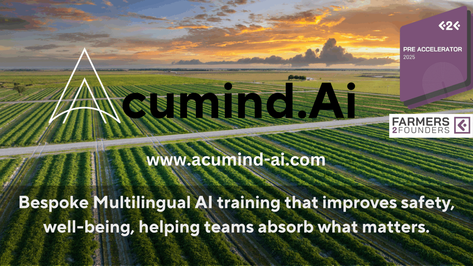 Acumind AI uses artificial intelligence to help farmers turn complex training information into digestible video modules, ensuring their workers not only understand crucial safety details but also retain the information, to help prevent serious injuries and fatalities. It’s also perfect for international CALD workers as the videos are multilingual.